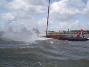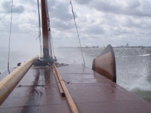 Daar begon de elende, tegen wind met golven van 1 meter die sloegen over het voordek